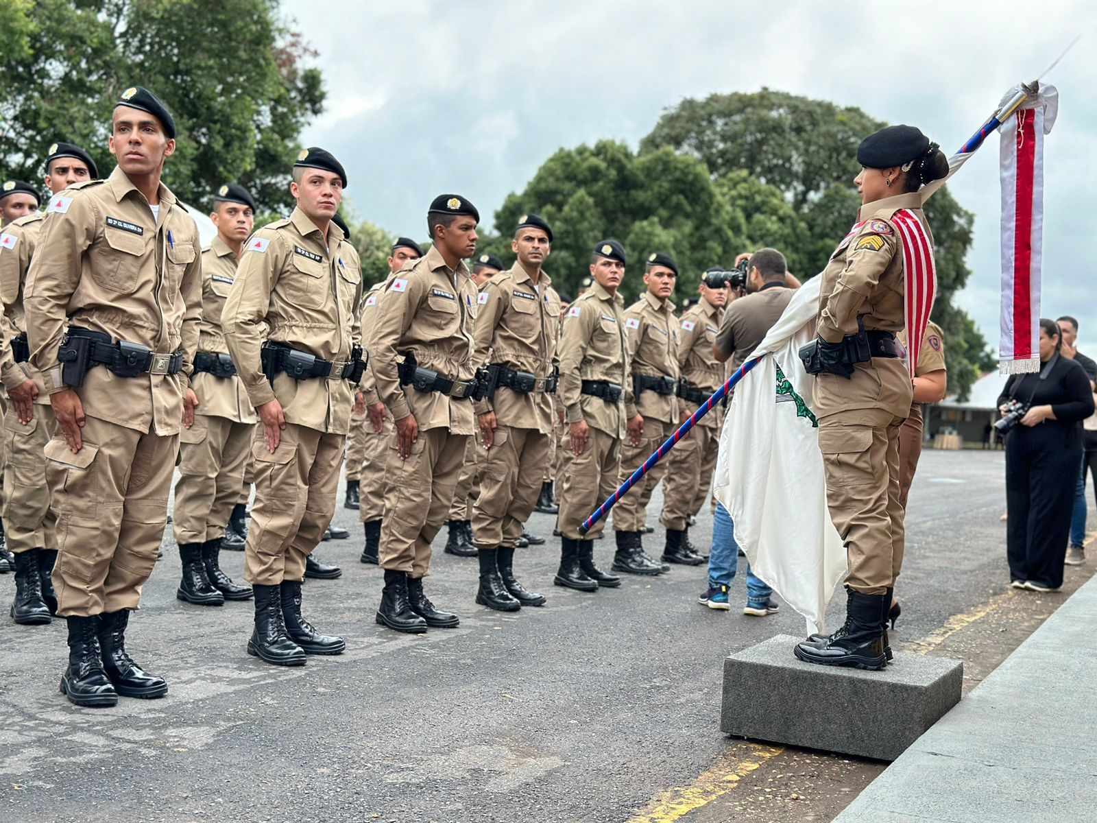 Os 62 discentes do Curso de Formação conheceram sobre a Bandeira Nacional, o Estandarte Histórico e receberam a boina e, a partir desta data, passarão a utilizar oficialmente a farda operacional como uniforme padrão.