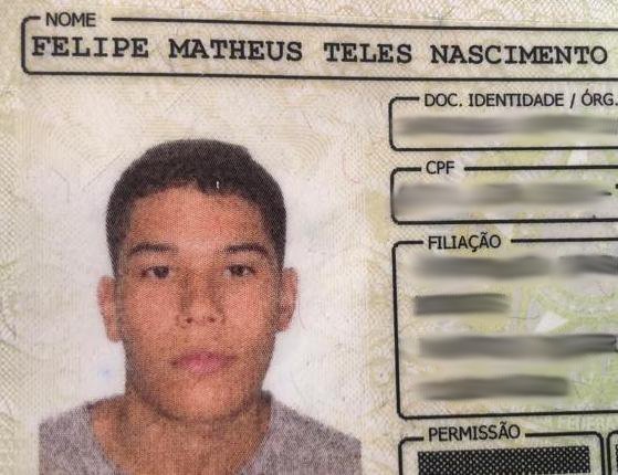 Uma testemunha relatou aos militares que se encontrava com a vítima Felipe Matheus Teles Nascimento, 20 anos, quando o jovem saiu para ir embora numa motocicleta Honda/Titan, cor vermelha, sem o uso do capacete.