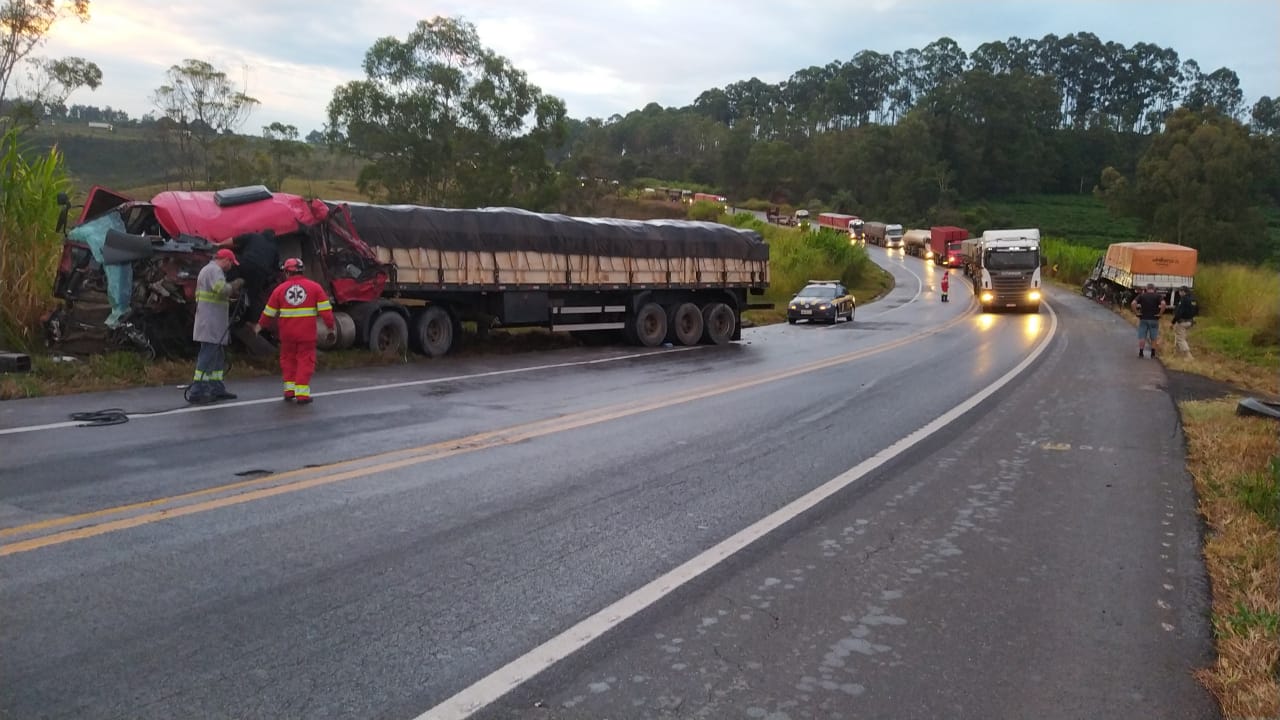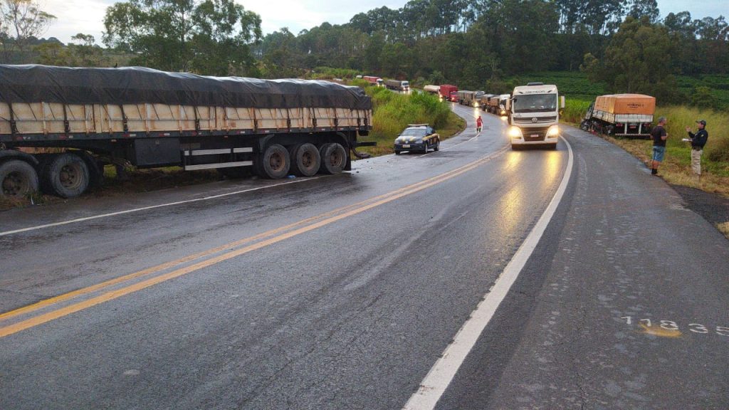 Rodovia ficou parcialmente interditada com pare e siga e trânsito lento.