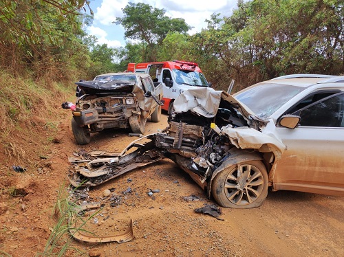 De acordo com informações, duas caminhonetes trafegavam em sentido contrário, quando se colidiram frontalmente.