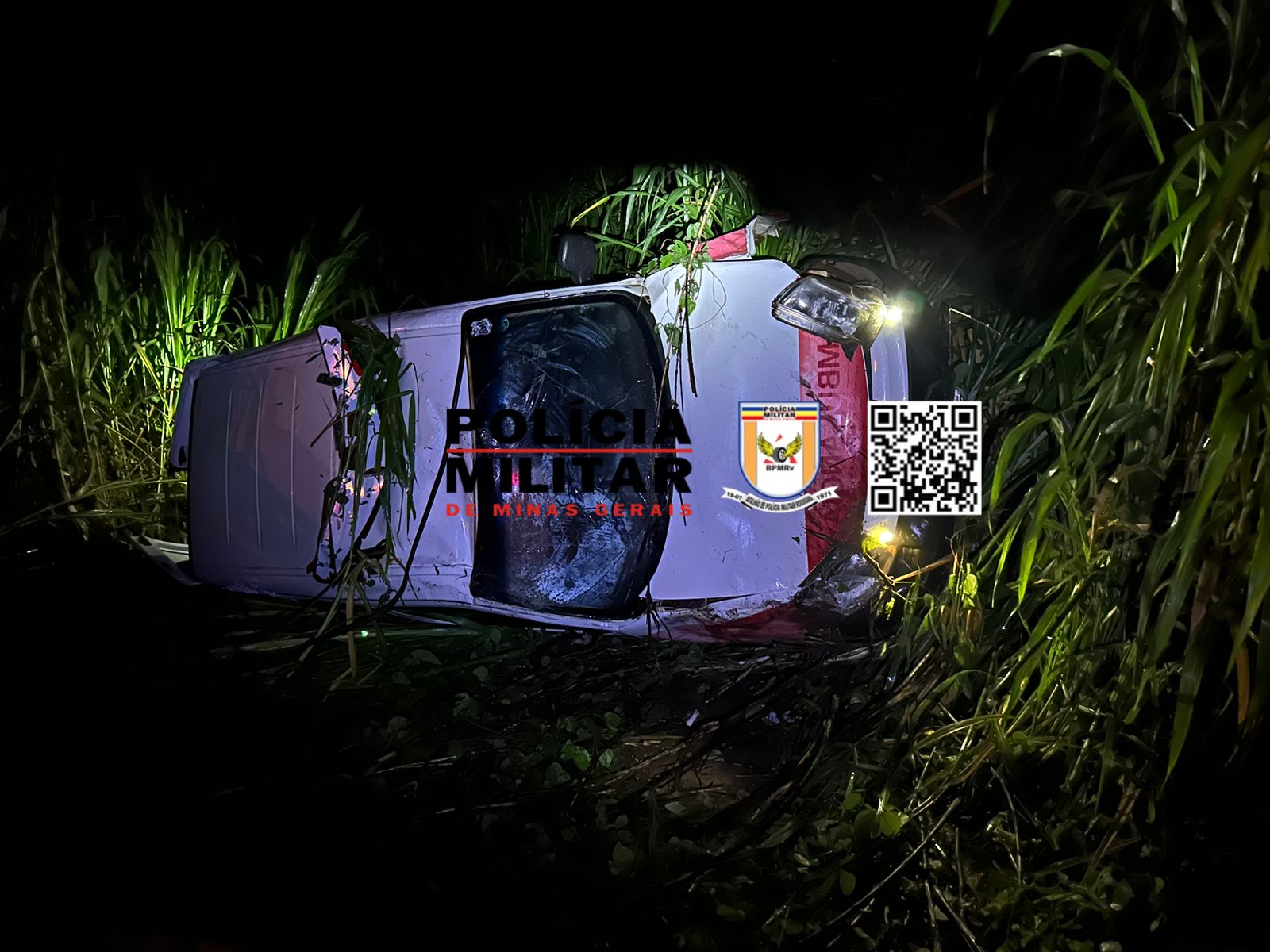 De acordo com informações do 12º Batalhão do Corpo de Bombeiros Militar em Patos de Minas, equipes foram acionadas para atender um acidente envolvendo uma ambulância. Por motivos desconhecidos o motorista perdeu o controle direcional, saiu da pista e tombou o veículo na faixa de domínio.