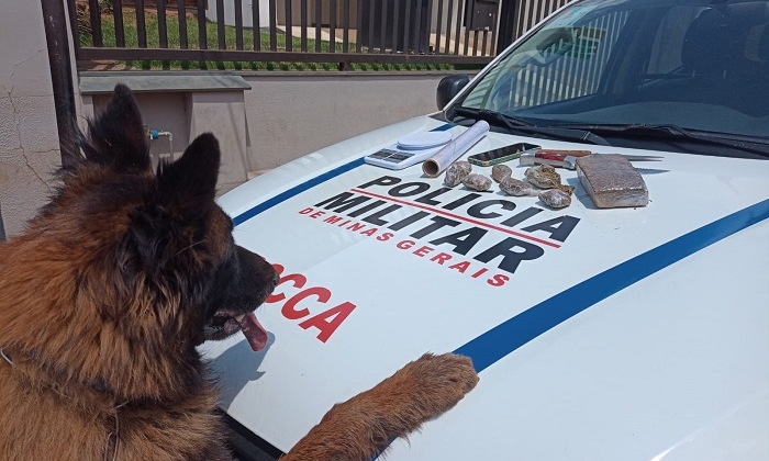 Com apoio do cão de faro “Cratos”, da equipe ROCCA, os militares deslocaram para um sitio e durante as buscas, foram localizadas uma barra e sete tabletes de maconha enterrados no fundo da casa. Ainda foram apreendidos um canivete, uma faca, uma balança, um rolo de papel usada para embalar drogas e um celular.