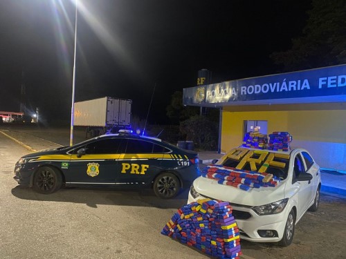A equipe policial deu ordem de parada e o veículo foi abordado. Durante a checagem dos equipamentos obrigatórios, a PRF encontrou centenas de tabletes de maconha no porta-malas do carro.