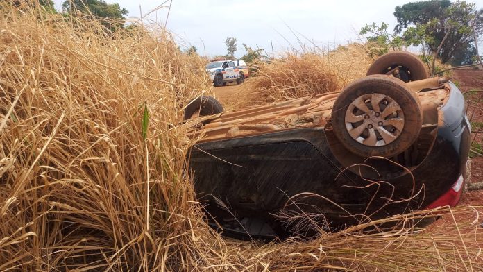Foi constatado que logo após o roubo, durante sua fuga no veículo da vítima, o autor perdeu o controle direcional do carro e o capotou. Referido veículo foi removido ao pátio credenciado do auto socorro plantonista de Coromandel.