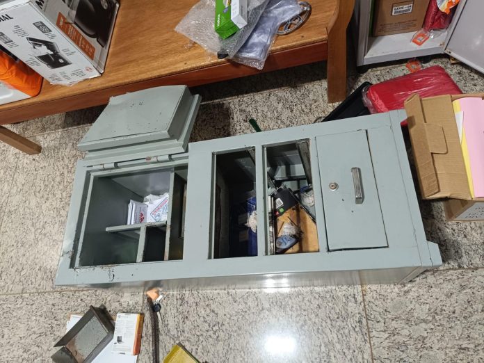 Dentro do apartamento, os bandidos foram até o escritório e, usando uma ferramenta “pé de cabra” e uma marreta arrombaram um cofre e levaram uma grande quantia em dinheiro, folhas de cheques, um revólver, anéis, correntinhas e pingentes em ouro, além de bijuterias e um aparelho celular xiomi (smd).