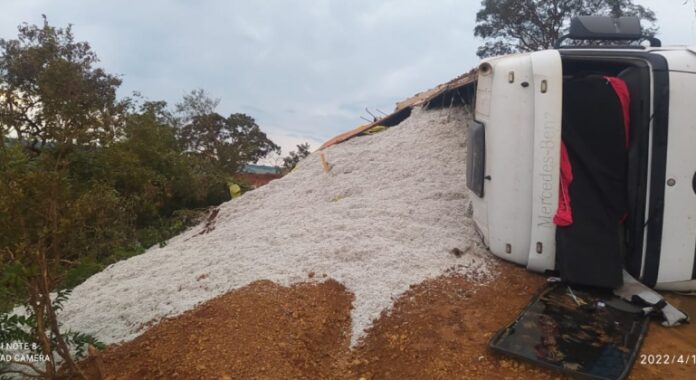 O motorista de uma carreta bitrem ficou ferido na tarde desta quarta-feira (13/04), após a carreta bitrem que ele conduzia tombar, no desvio feito pela Prefeitura de Presidente Olegário, na MGC-354. Ele seguia sentido a cidade de Patos de Minas, quando o veículo carregado com caroço de algodão acabou tombando. O fato foi registrado por volta das 17h00.