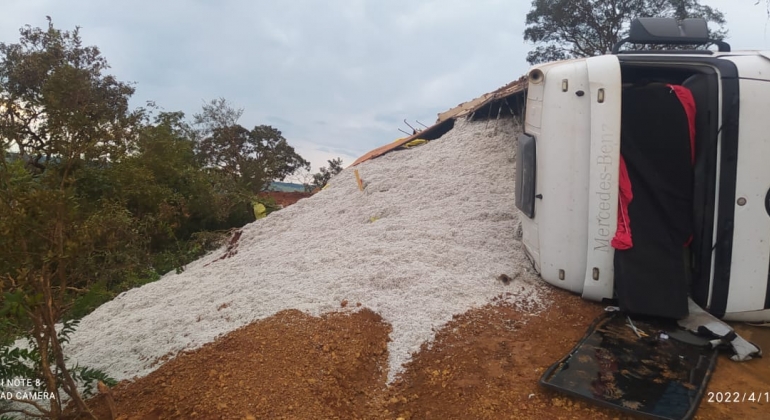De acordo com informações do sargento Alberto da Polícia Militar, o condutor do bitrem, um rapaz de 29 anos, relatou que seguia pela estrada de terra e, na descida do desvio, ele acionou os freios que não funcionaram, foi acionado o freio de emergência que também acabou falhando, com isso, o veículo pegou embalo e acabou tombando.