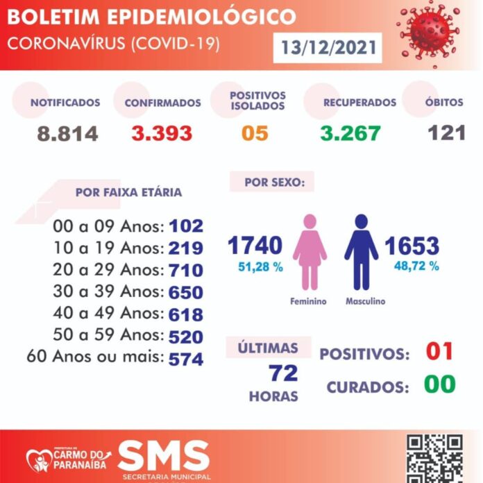 Boletim Epidemiológico: Apenas um caso positivado nas últimas 72 horas em Carmo do Paranaíba