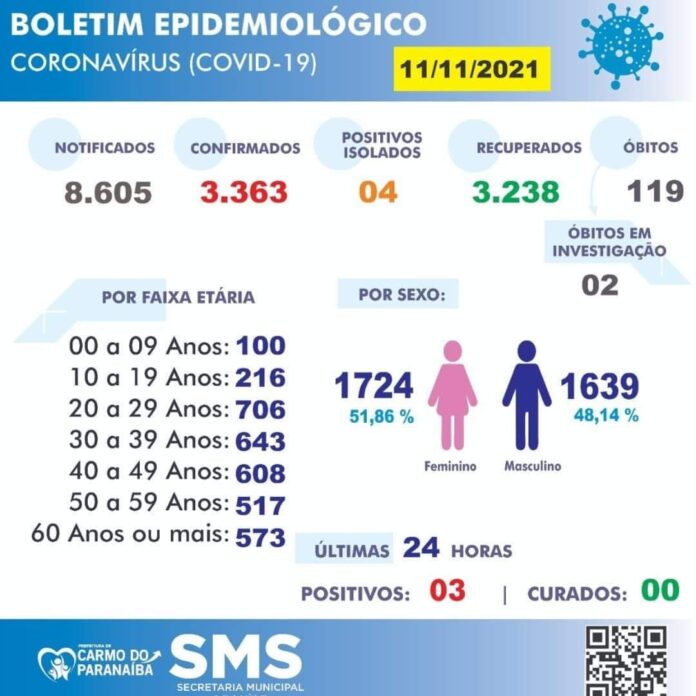 Nas últimas 24 horas três novos casos de Covid-19 foram confirmados em Carmo do Paranaíba.