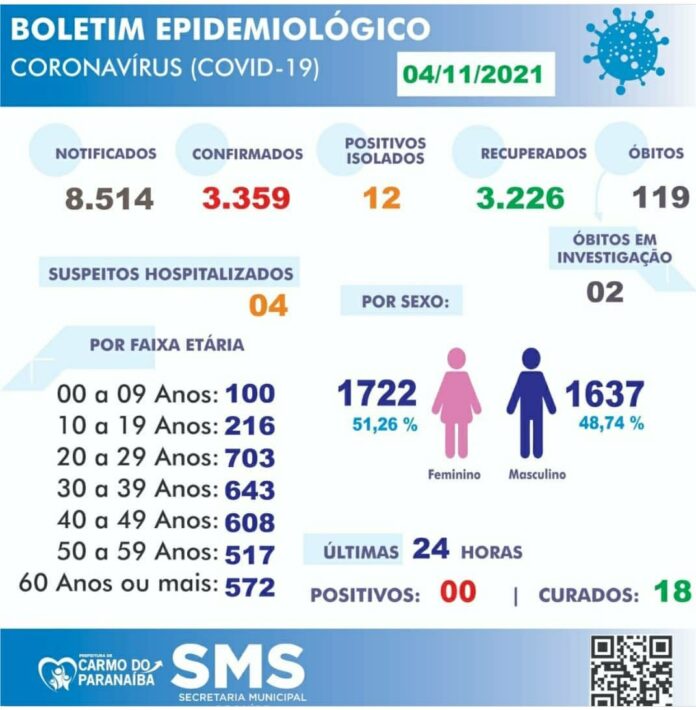 São 8.514 o número de casos notificados, 3.359 positivados e 3.226 curados.