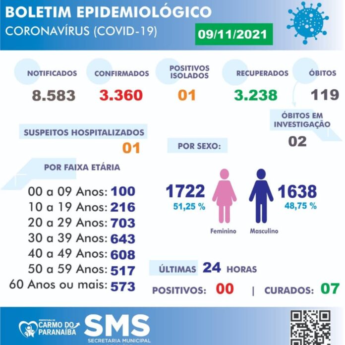 De acordo com o boletim epidemiológico desta terça-feira (08), apenas um caso positivo e um suspeito hospitalizado.