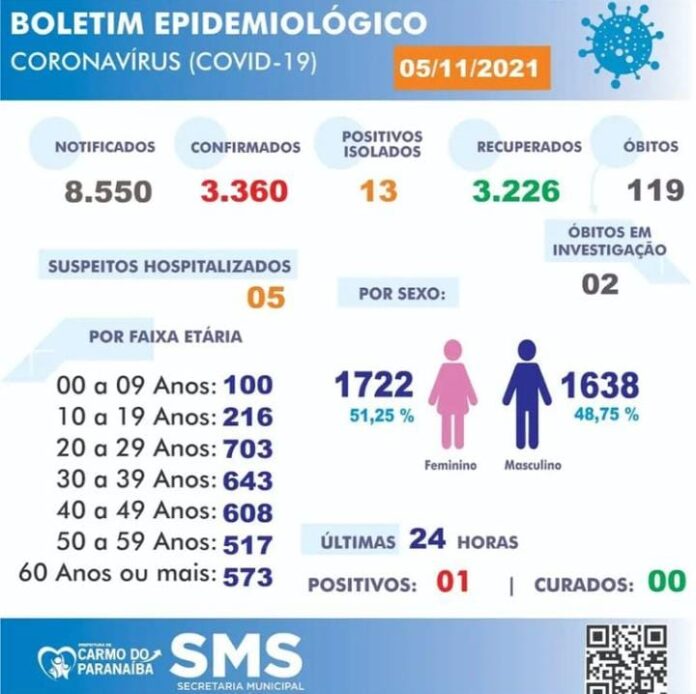 São 8.550 o número de casos notificados, 3.360 positivados e 3.226 curados.