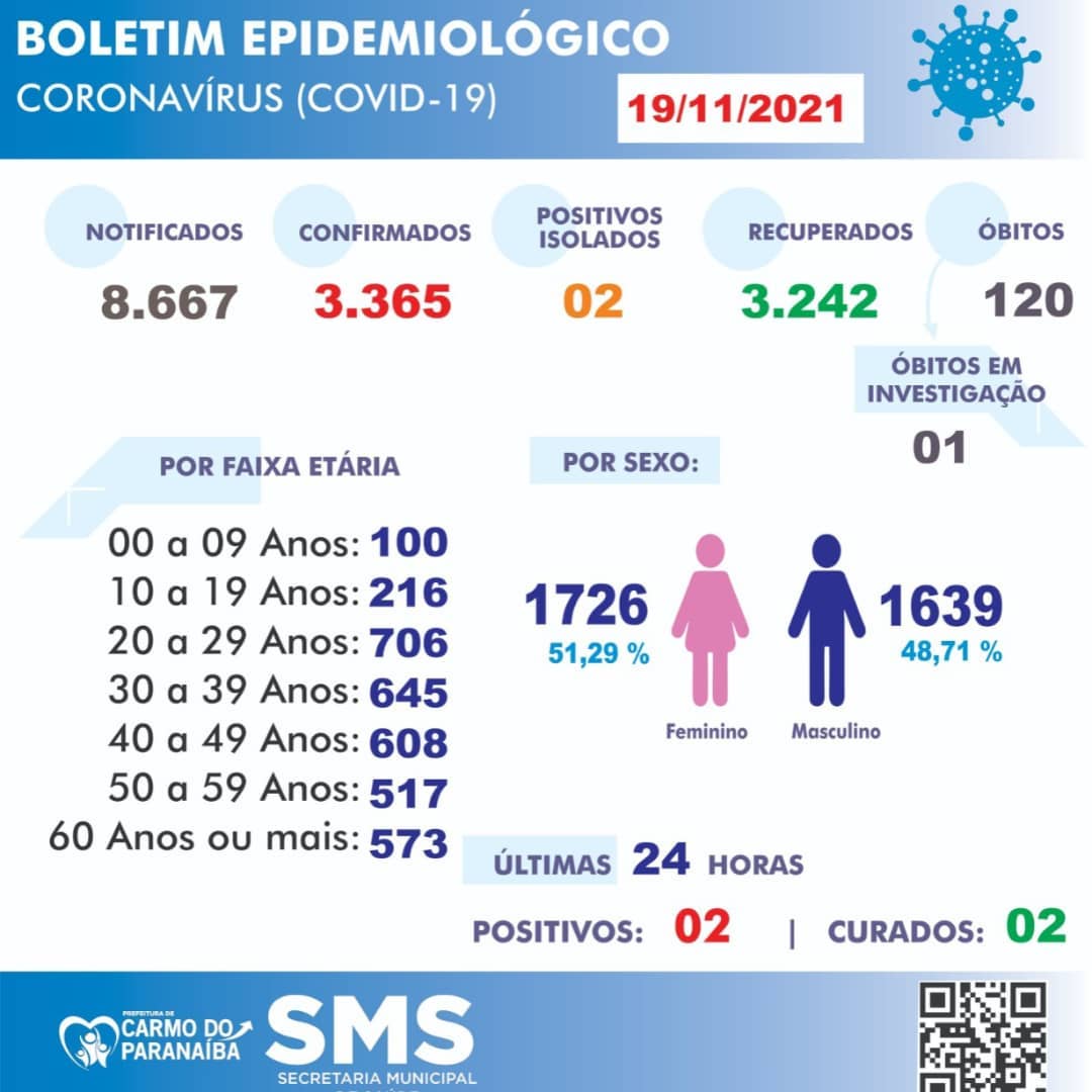 Nas últimas 24 horas apenas dois casos de Covid-19 foram confirmados em Carmo do Paranaíba.