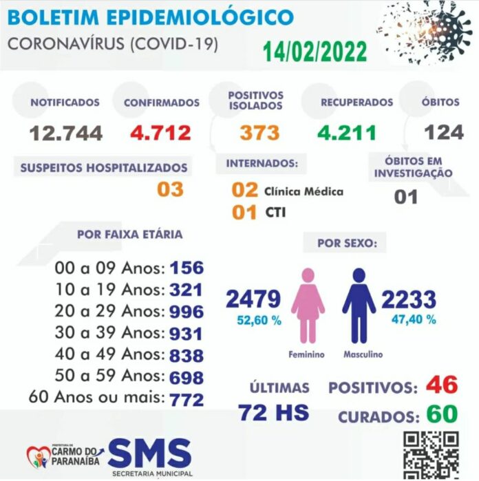 Nas últimas 72 horas foram 46 casos de Covid-19 confirmados em Carmo do Paranaíba e 60 saíram do isolamento.