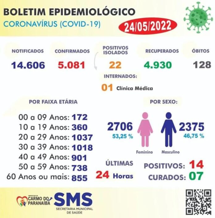 Boletim Epidemiológico – Quatorze casos de Covid-19 confirmados nas últimas 24 horas em Carmo do Paranaíba; sete pessoas saíram do isolamento