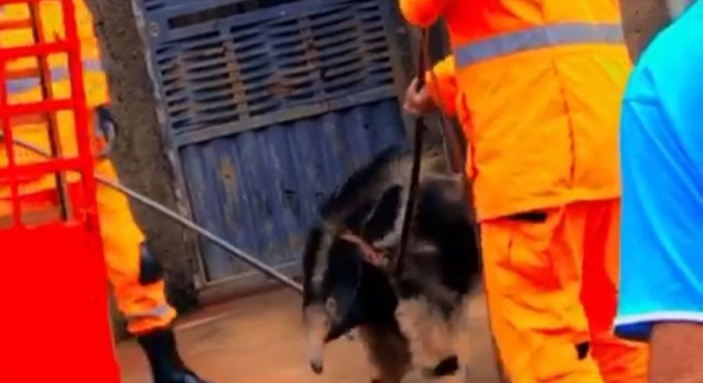 O Corpo de Bombeiros capturou um tamanduá-bandeira na manhã deste domingo (28/11) na Rua Zizinho Vida, no Bairro Jardim Panorâmico.