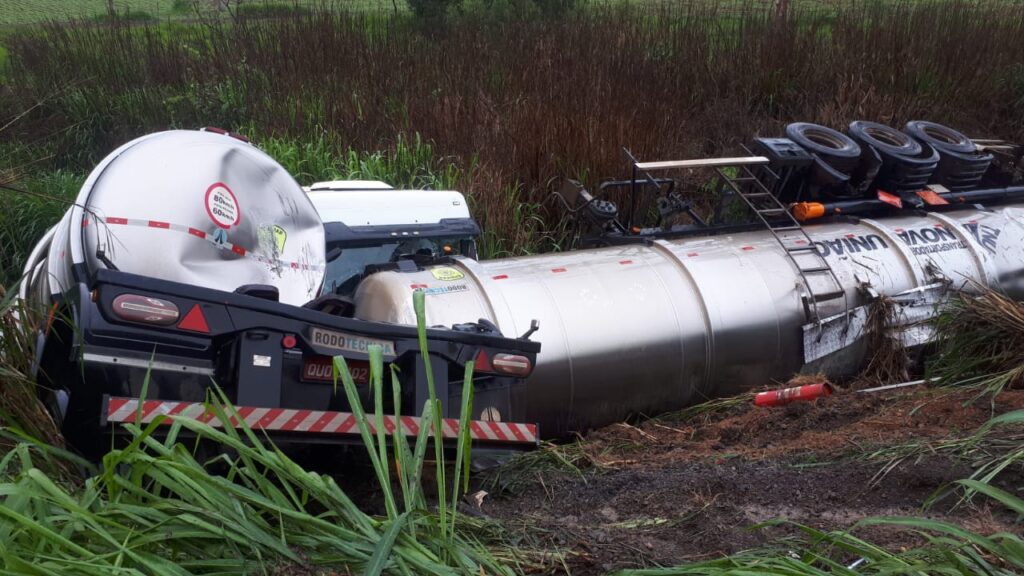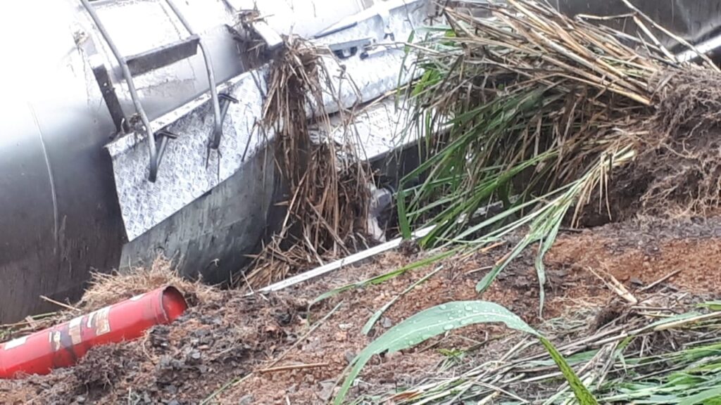 Um dos tanques da carreta bitrem, com 30 mil litros de etanol, apresentou vazamento. Os órgãos ambientais (NEA, FEAM) foram devidamente acionados. A empresa Ambipar, responsável pelo gerenciamento ambiental e manejo de produtos químicos, enviou uma equipe para o local.
