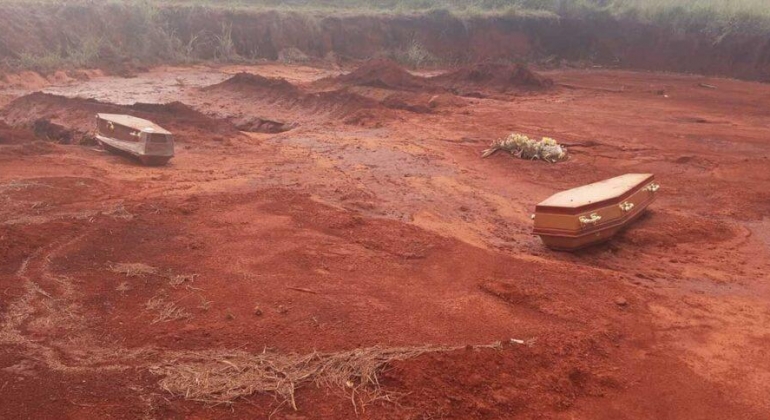 Caixões ficam espalhados em cemitério de Paracatu após enxurrada invadir o local