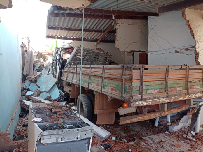 Na manhã desta terça-feira (17/01), um caminhão entrou numa residência na Avenida João Baptista Rodrigues, no bairro Residencial Monjolo, em Patos de Minas. O veículo descia a Rua dos Balsamos quando apresentou problemas nos freios.