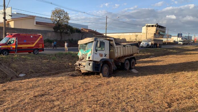 O Corpo de Bombeiros foi acionado e constatou que o motorista do caminhão havia sofrido algumas escoriações e estava com suspeita de ter quebrado a perna.
