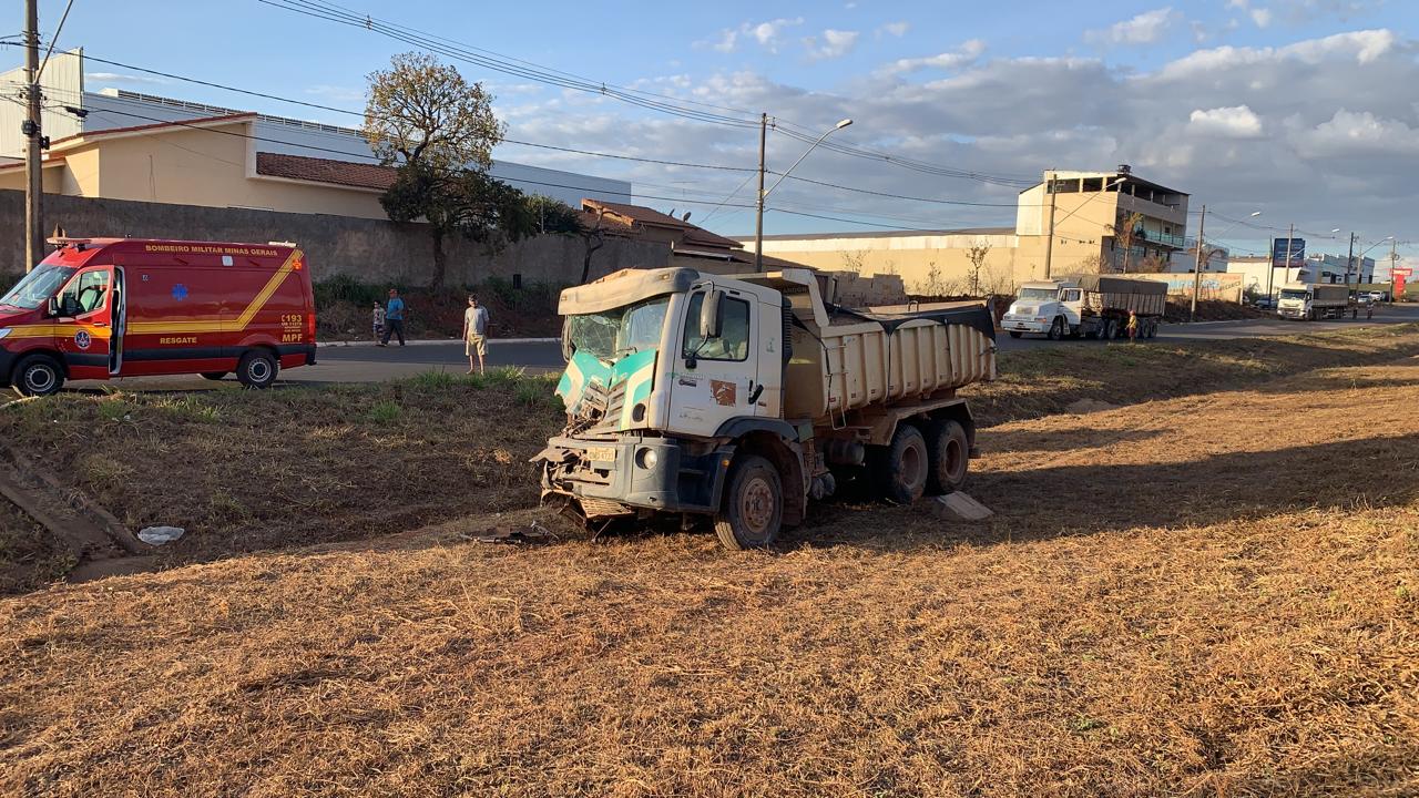 Na tarde de hoje (9), um caminhão que seguia no sentido Varjão de Minas ao Trevo da Pipoca, bateu na traseira de uma carreta e saiu fora da pista.