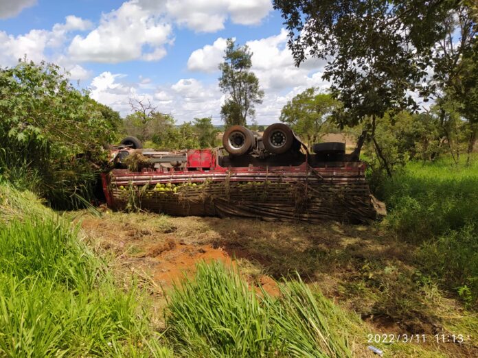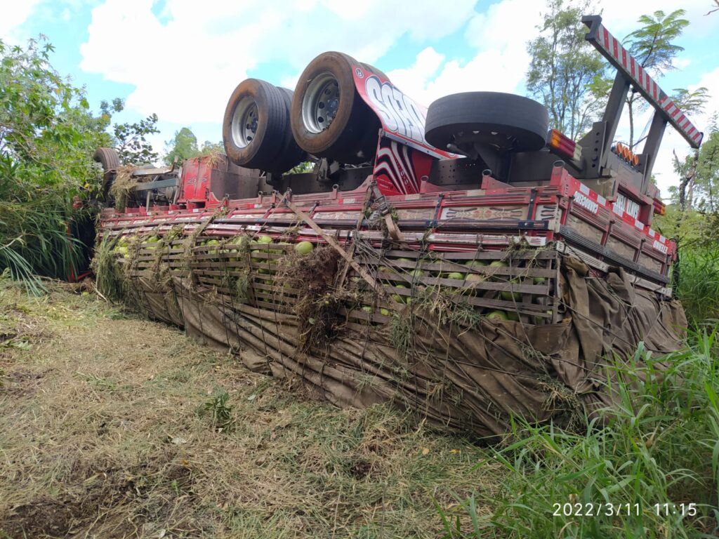 De acordo com informações, o motorista perdeu o controle direcional, o caminhão saiu da pista e capotou. O condutor foi socorrido e encaminhado com ferimentos leves para a Unidade de Pronto Atendimento (UPA) de Araxá.
