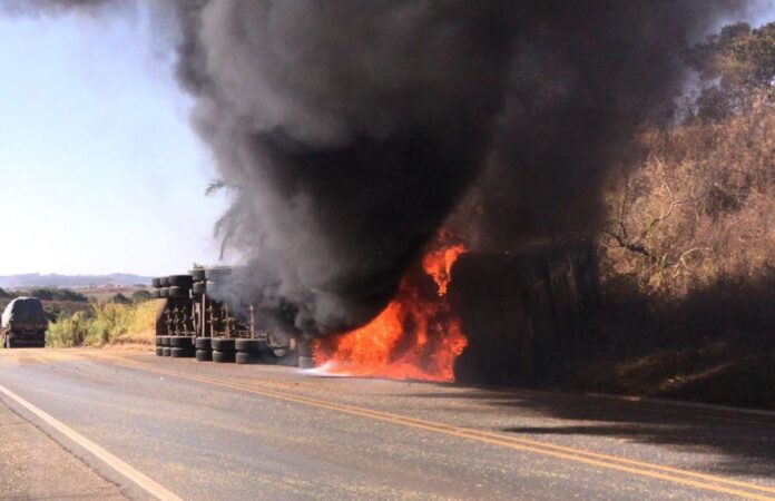 Um caminhoneiro morreu carbonizado nesta quinta-feira (18/08), após um acidente seguido de incêndio do veículo na BR-354, entre São Gotardo e Santa Rosa da Serra. O capotamento aconteceu por volta das 15h00. Uma equipe do Corpo de Bombeiros de Campos foi ao local, mas as chamas já tinham praticamente consumido o veículo.