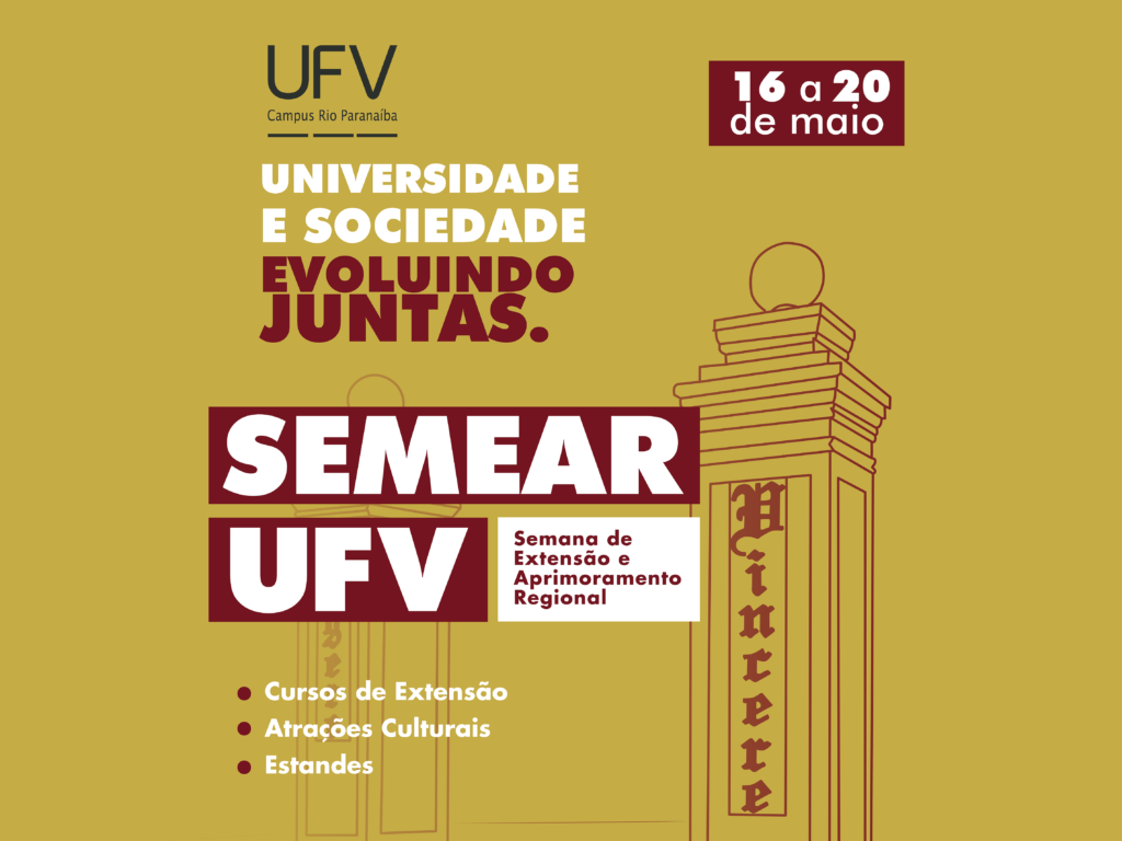 O projeto do Semear foi inicialmente desenvolvido pela turma 2022-1 do mestrado profissional em Administração Pública em Rede Nacional (Profiap), como parte das exigências da disciplina Gestão de Projetos Públicos, coordenada pelo professor Fábio André Teixeira. De acordo com a diretora de Extensão e Cultura, Virgínia Souza Santos, o evento trará uma excelente oportunidade de qualificação profissional, bem como maior vivência da comunidade dentro da Universidade. Ela ressaltou que o Semear englobará ainda a promoção de mais de 40 cursos em variadas áreas do conhecimento, por meio da parceria entre a Diretoria de Extensão e Cultura, a Diretoria Geral do campus e a Pró-Reitoria de Extensão e Cultura da UFV. Na programação, estão previstas palestras, cursos, oficinas, dias de campo e atividades culturais, entre outras.