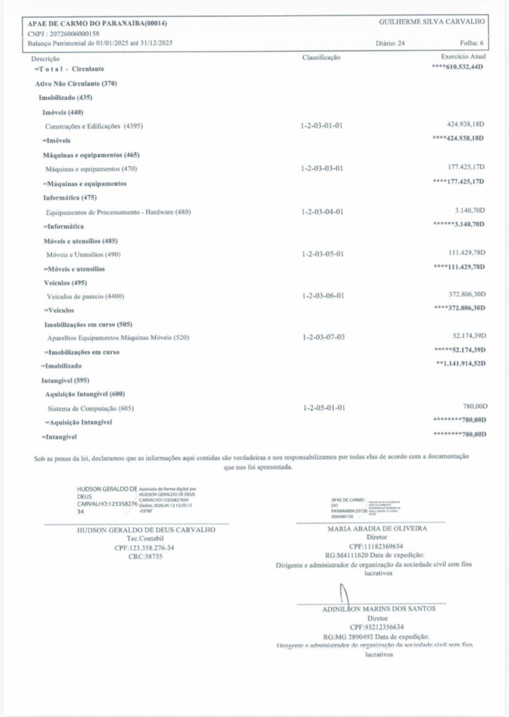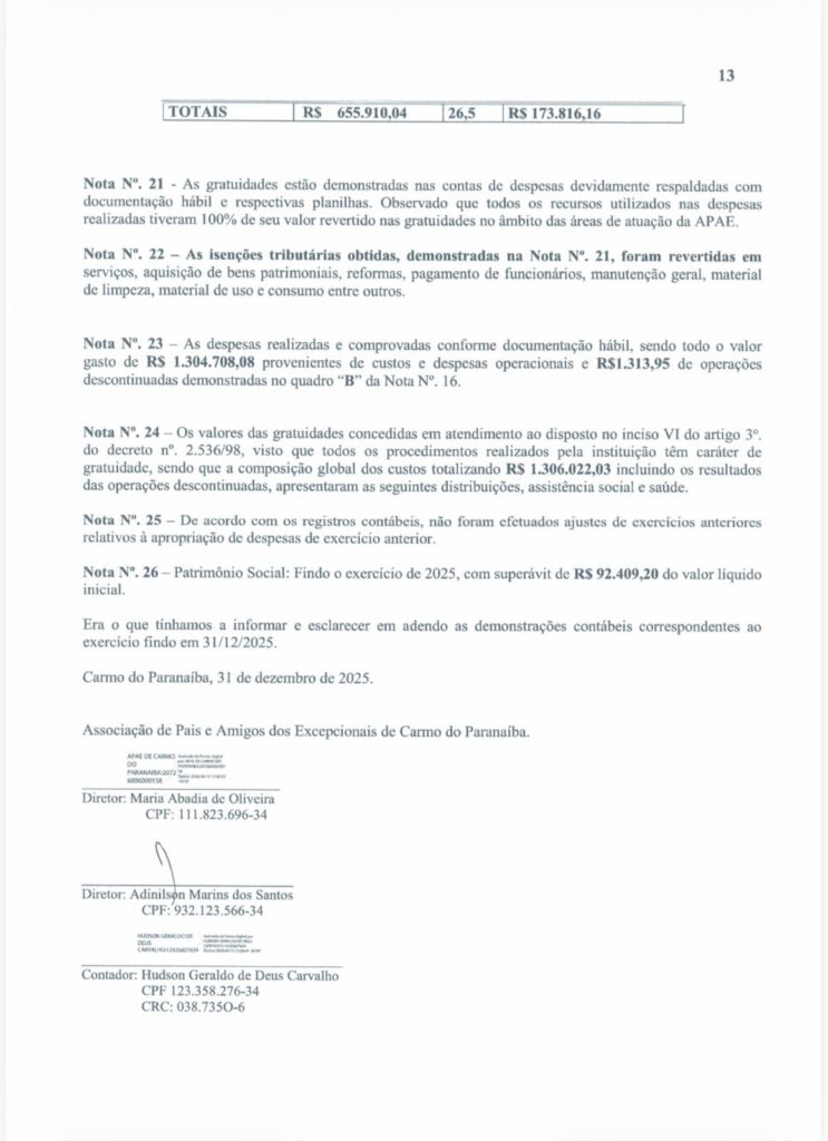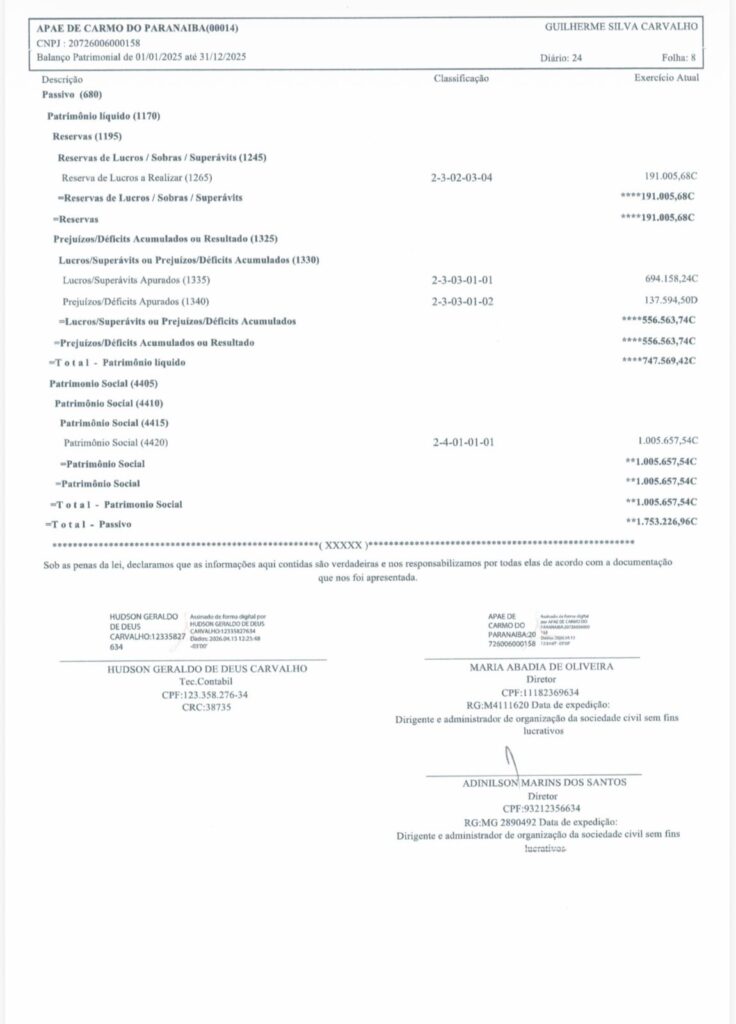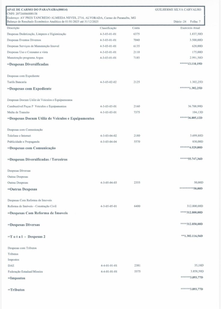 Carmo do Paranaíba – APAE divulga Demonstrativos Contábeis 2025 By Tribuna Informa abril 30, 2026 A APAE de Carmo do Paranaíba divulgou na manhã de hoje (30/04), os demonstrativos contábeis da instituição relativos ao exercício de 2025. Confira: Share FacebookTwitterPinterestWhatsApp Previous articleProcura por homem desaparecido mobiliza autoridades e população em Patos de MinasNext articleCarmo do Paranaíba – Mulher é detida após agressão durante discussão com companheiro RELACIONADAS Cidade Procura por homem desaparecido mobiliza autoridades e população em Patos de Minas abril 29, 2026 Cidade Deputado Hely Tarquínio visita Santa Casa de Carmo do Paranaíba e acompanha aplicação de recursos abril 28, 2026 Cidade Carmo do Paranaíba – Facilite seu voto e transfira o título para uma seção com acessibilidade abril 28, 2026 LEAVE A REPLY Cancel reply Comment: Please enter your comment! Name:* Please enter your name here Email:* You have entered an incorrect email address! Please enter your email address here Website: Save my name, email, and website in this browser for the next time I comment. Mais Acessados Carmo do Paranaíba – Mulher é detida após agressão durante discussão com companheiro abril 30, 2026 Procura por homem desaparecido mobiliza autoridades e população em Patos de Minas abril 29, 2026 Criminoso furta bateria e parafusadeira de carro em Carmo do Paranaíba abril 29, 2026 Caminhão de empresa de laticínios de Lagoa Formosa incendeia em estrada da zona rural do município abril 29, 2026