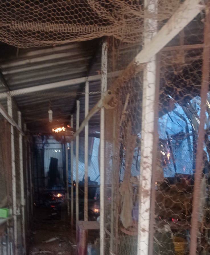 As chamas haviam se alastrado rapidamente e cerca de 10 aves foram queimadas.