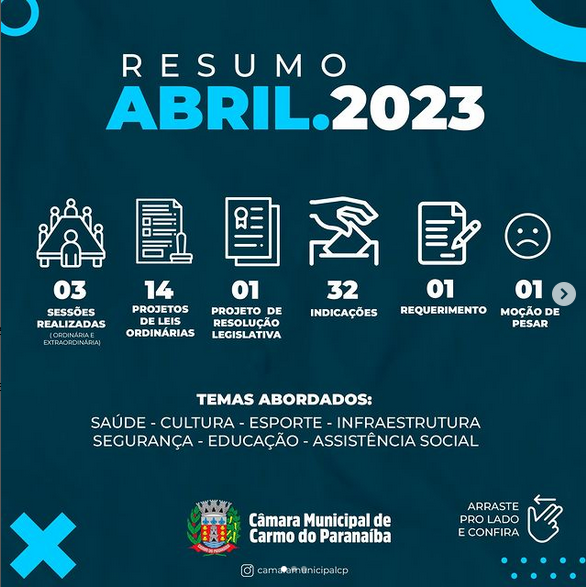 Abril marcou o encerramento de mais um mês e tanto na Câmara Municipal de Carmo do Paranaíba. Foram diversos projetos apresentados.
