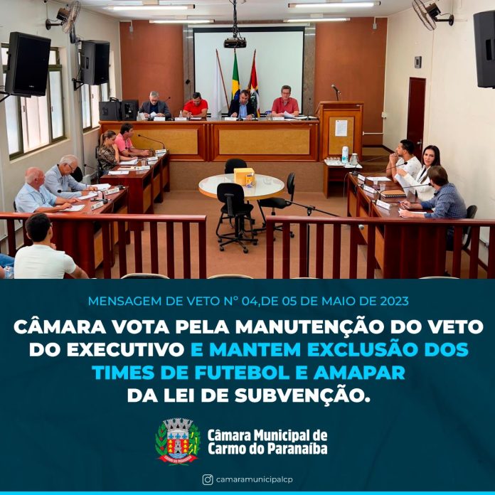 Com o veto, o Poder Executivo exclui da Lei de Subvenção os valores destinados aos times de futebol da cidade (Paranaíba R$36.000,00, Niterói R$ 32.000,00 e Boca Jrs R$32.000,00) e à AMAPAR (R$ 25.000).