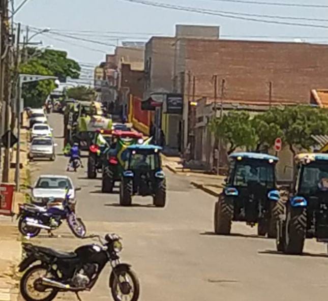 Entre os veículos, destaque para os caminhões, tratores e máquinas agrícolas que acompanharam o trajeto em demonstração ao apoio que o Agro vem apresentando ao atual presidente.