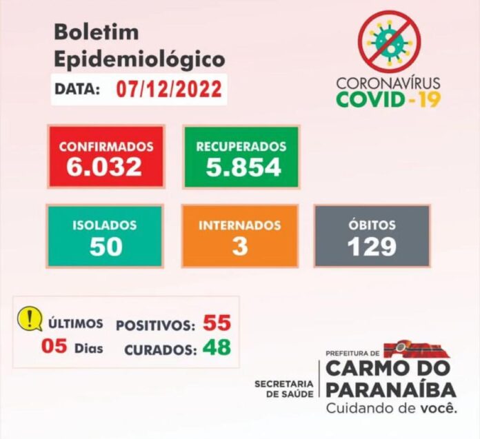 Nos últimos cinco dias, a SMS registrou 55 casos de Covid-19 em Carmo do Paranaíba e 48 pessoas saíram do isolamento.