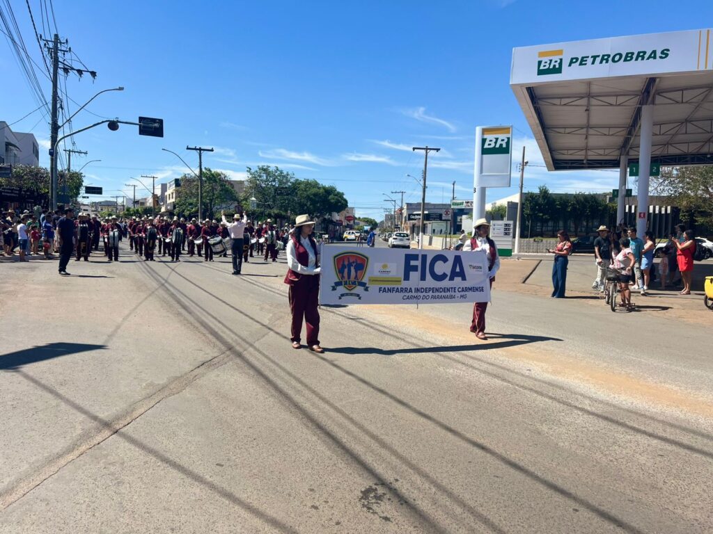 Na manhã deste sábado (04), Carmo do Paranaíba viveu um momento de união, emoção e orgulho cívico durante as comemorações pelos seus 138 anos de emancipação político-administrativa. O desfile, organizado pela Secretaria Municipal de Educação, Cultura, Lazer e Esporte, reuniu centenas de alunos das escolas da rede municipal, grupos culturais e a tradicional Fanfarra Independente Carmense (FICA), juntamente com demais fanfarras de cidades da região.