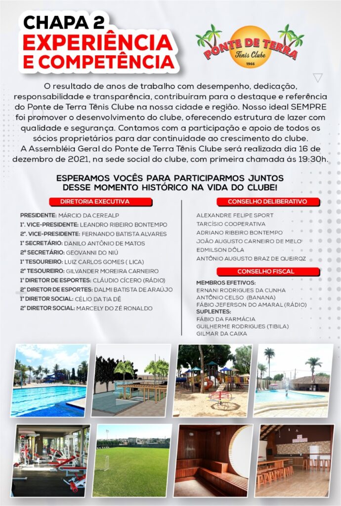 Na noite desta quinta-feira (16), foi realizada a eleição da diretoria do Ponte de Terra Tênis Clube, em Carmo do Paranaíba.