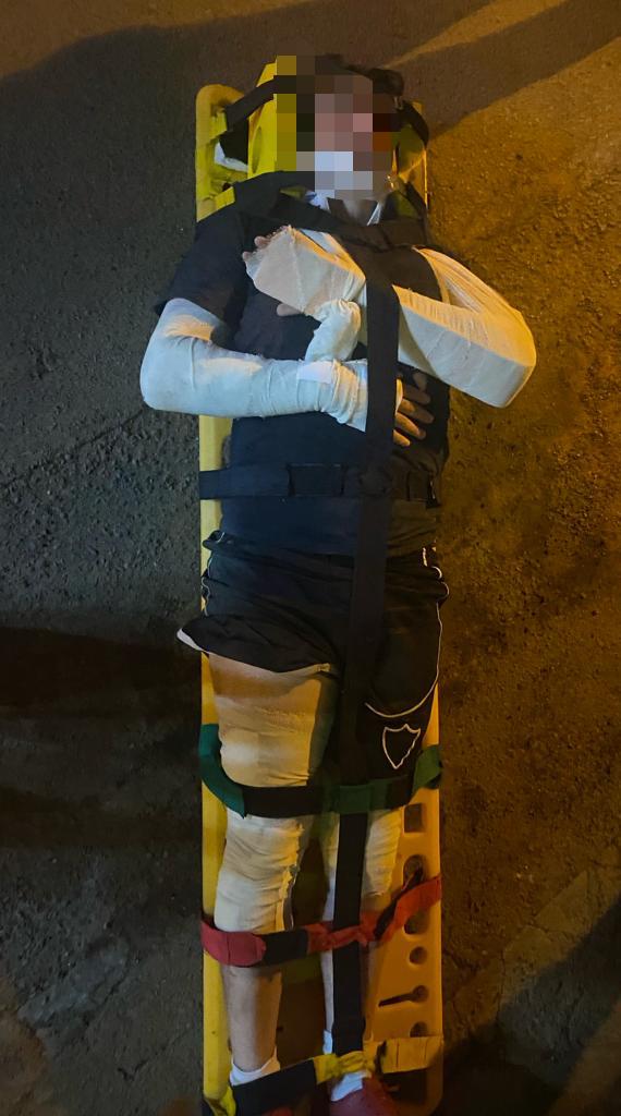 Ele teve esfoliações no braço e perna direitos e suspeita de fratura no punho esquerdo.