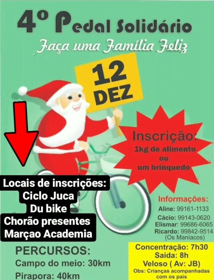 Qualquer pessoa pode participar, basta contribuir com pelo menos 1kg de alimento ou com algum brinquedo. As inscrições podem ser feitas nos seguintes locais: Ciclo Juca, Du Bike, Chorão Presentes e Marção Academia.