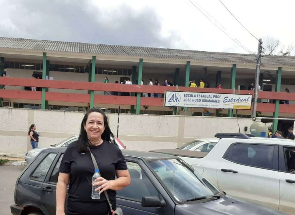 Fernanda Biasi chegou com meia hora de antecedência na Escola Estadual Professor José Hugo Guimarães