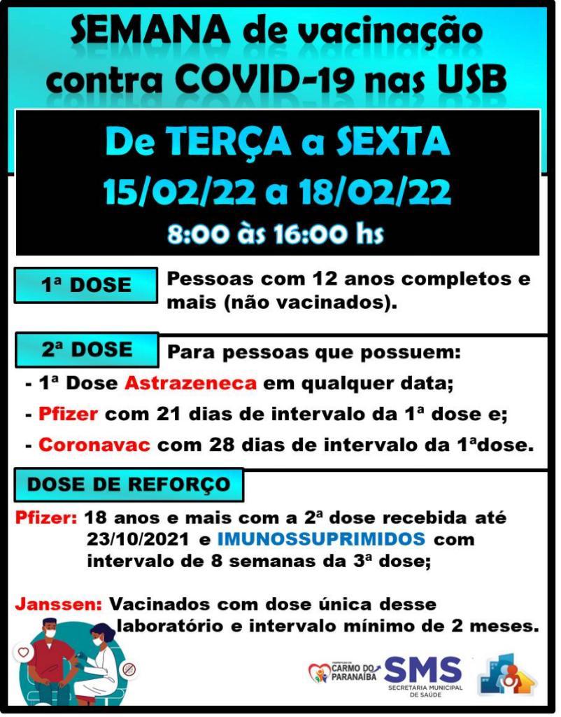 A Secretaria Municipal de Saúde de Carmo do Paranaíba divulgou o calendário de vacinação contra Covid-19 desta semana. Confira: