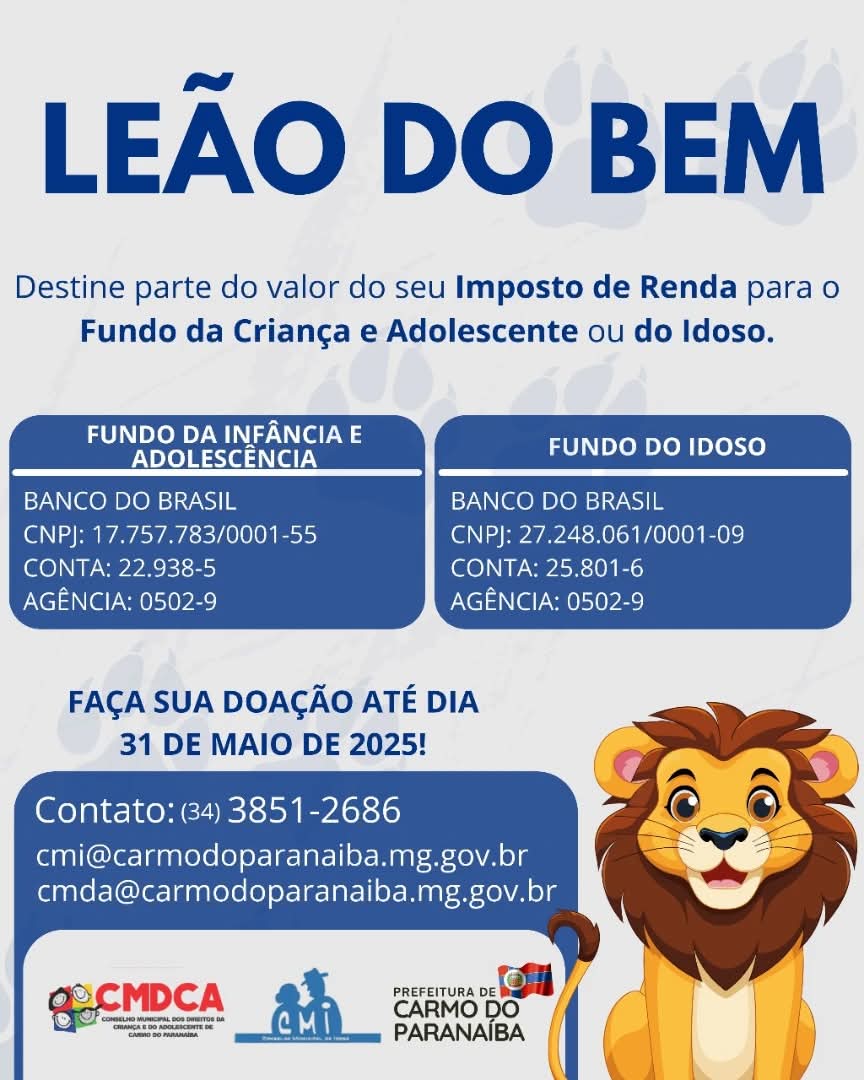 Por meio da campanha Leão do Bem, tanto pessoas físicas quanto jurídicas podem destinar até 6% e 1% do imposto de renda devido, respectivamente, para o Fundo Municipal dos Direitos da Criança e do Adolescente e o Fundo Municipal do Idoso. Esses fundos são geridos pelos Conselhos Municipais dos Direitos da Criança e do Adolescente e do Idoso, que garantem a correta aplicação dos recursos.
