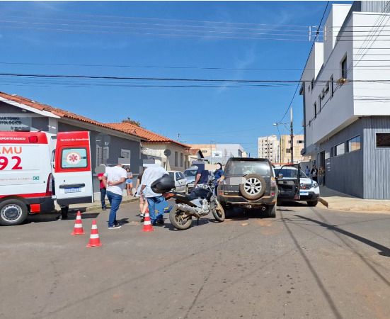 O outro acidente de trânsito envolveu um veículo MMC/Pajero e uma motocicleta Yamaha/Fazer 250 e que também deixou um motociclista ferido na Rua Dr. Barcelos. A Polícia Militar, acionada pela sala de operações, compareceu rapidamente ao local e de acordo com o condutor do veículo MMC/Pajero, ele seguia pela Rua Dr. Barcelos no sentido bairro/centro e fez uma parada no cruzamento com a Rua Prefeito João Carvalho. Ao avançar, ele não visualizou a motocicleta que seguia pela Rua João Carvalho no sentido centro/bairro, resultando na colisão entre os veículos.