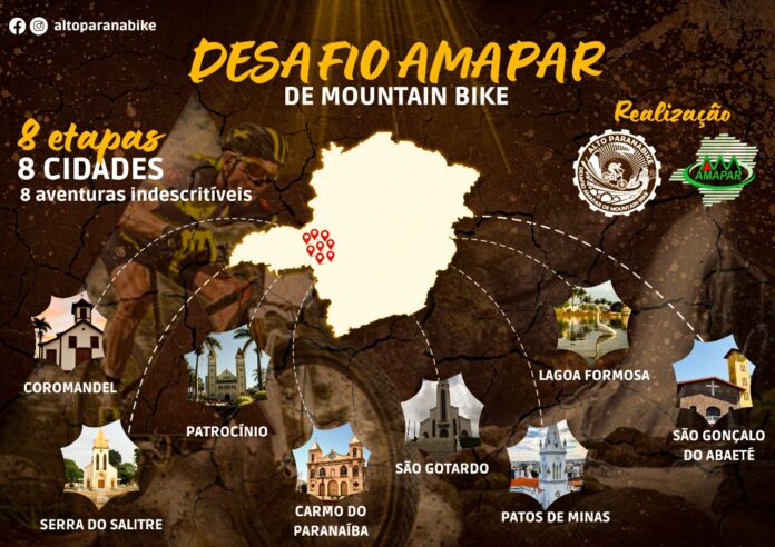 O projeto Alto Paranabike – Desafio Amapar de Mountain Bike – já tem suas cidades sede definidas para 2022. Oito municípios receberão as etapas do evento, que tem como proposta, incentivar o esporte, fomentar a economia, o turismo e a cultura em nossa região. No ano passado, as cidades de Carmo do Paranaíba, Coromandel e Patrocínio sediaram as primeiras edições, reunindo cerca de 600 participantes entre ciclistas profissionais e amadores.