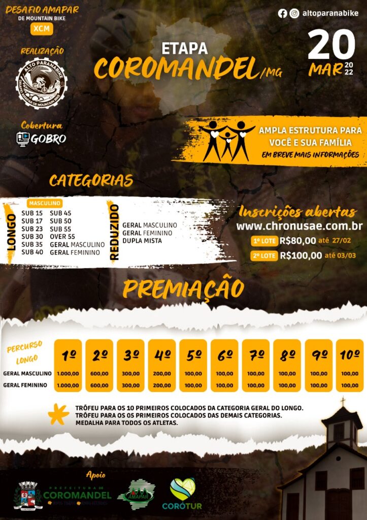 Além de Coromandel, ainda receberão etapas do Desafio Amapar de Mountain Bike, os seguintes municípios, com datas a serem divulgadas: