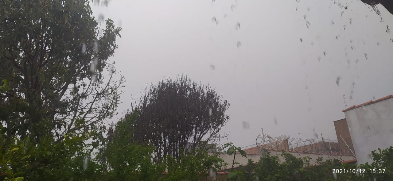 Inmet publica aviso iniciando em: 12/10/2021 10:00. Chuva entre 20 e 30 mm/h ou até 50 mm/dia, ventos intensos (40-60 km/h), e queda de granizo. Baixo risco de corte de energia elétrica, estragos em plantações, queda de galhos de árvores e de alagamentos“, afirma o instituto de meteorologia.