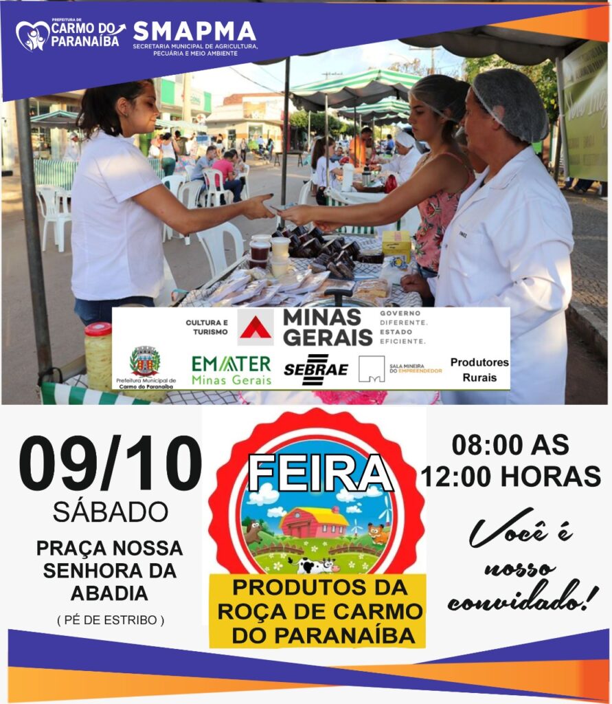 A feira será realizada na Praça Nossa Senhora da Abadia (Pé de Estribo), das 08:00h às 12:00h.