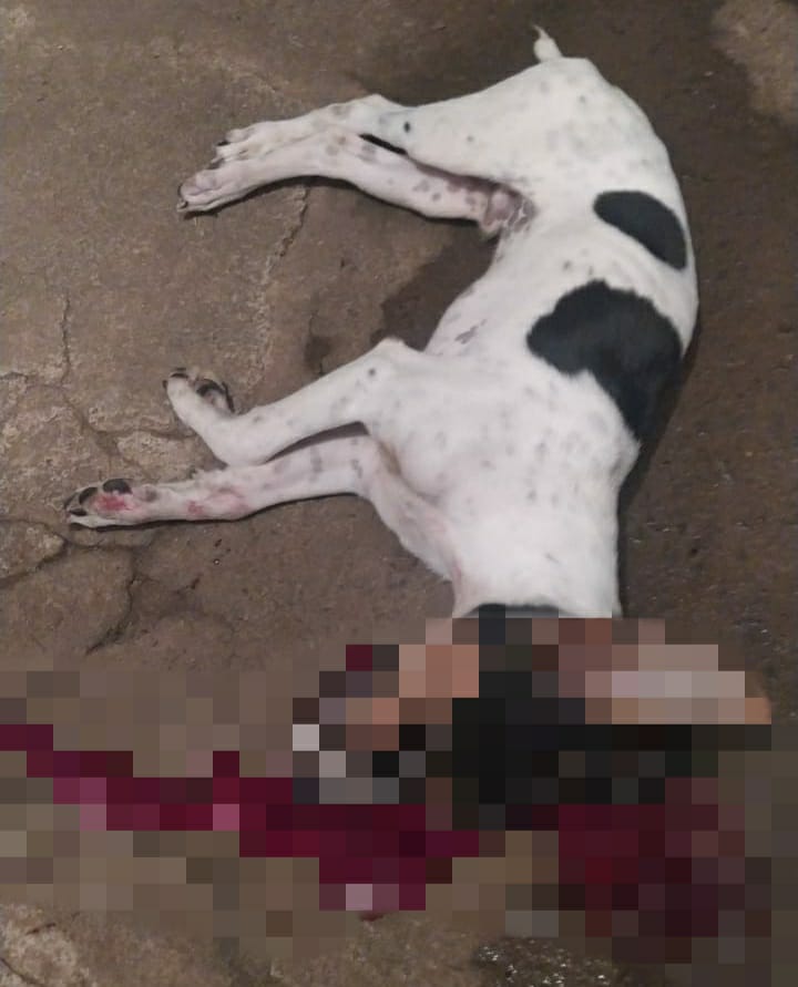 O cachorro não resistiu aos ferimentos, principalmente na cabeça, e morreu no local.