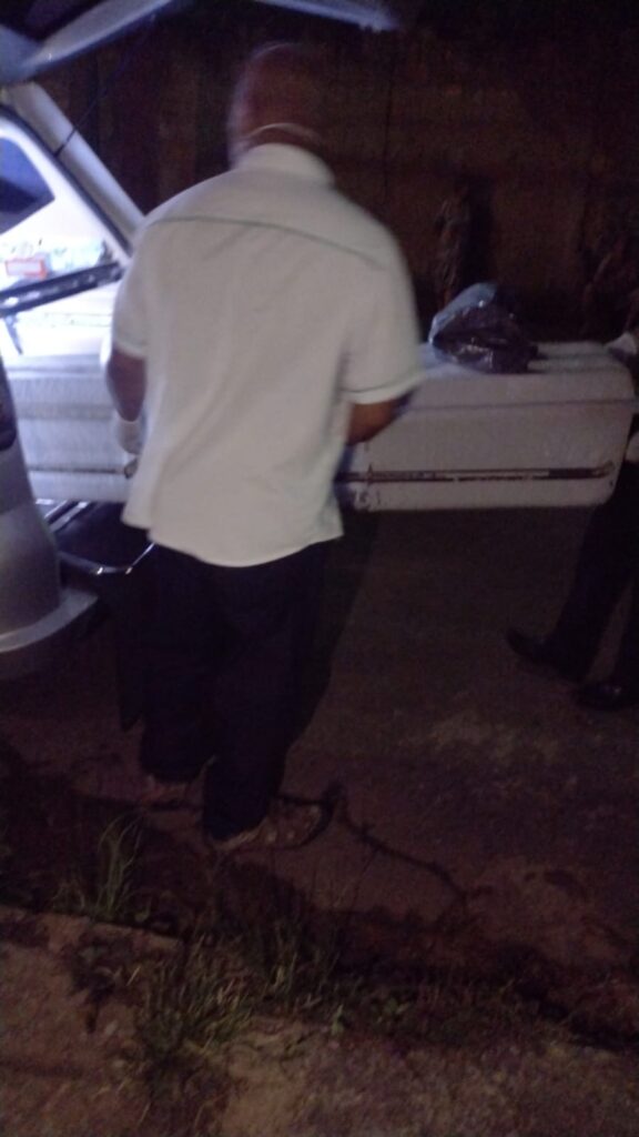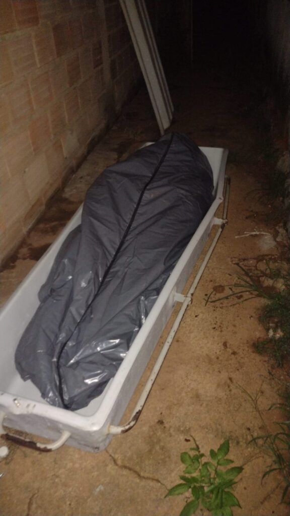 O portão da residência foi arrombado pelos militares, que se depararam com um corpo em avançado estado de decomposição. A casa estava com uma porta aberta, e a vítima deitada em um colchão no chão embrulhada em cobertores.