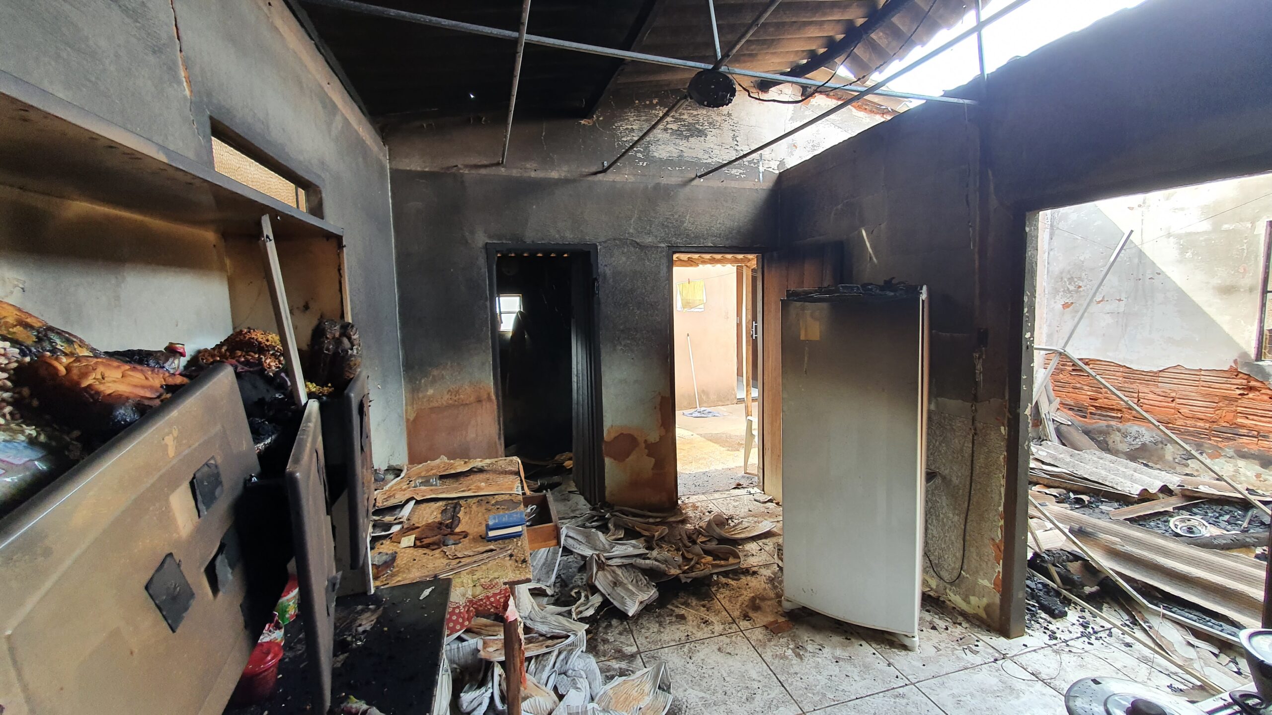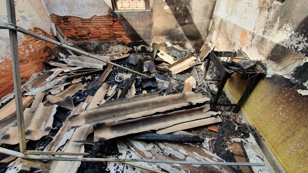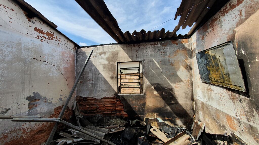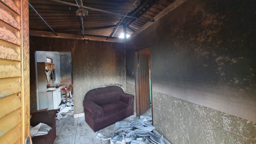 Na madrugada de hoje (05), um homem ateou fogo em um cobertor após ter um surto psicótico. O fogo acabou se espalhando pela residência que ficou totalmente destruída.