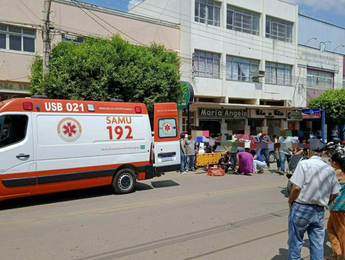 Uma motocicleta Honda/Biz que subia a avenida sentido prefeitura à praça do Pé de Estribo acabou colidindo contra a senhora.
